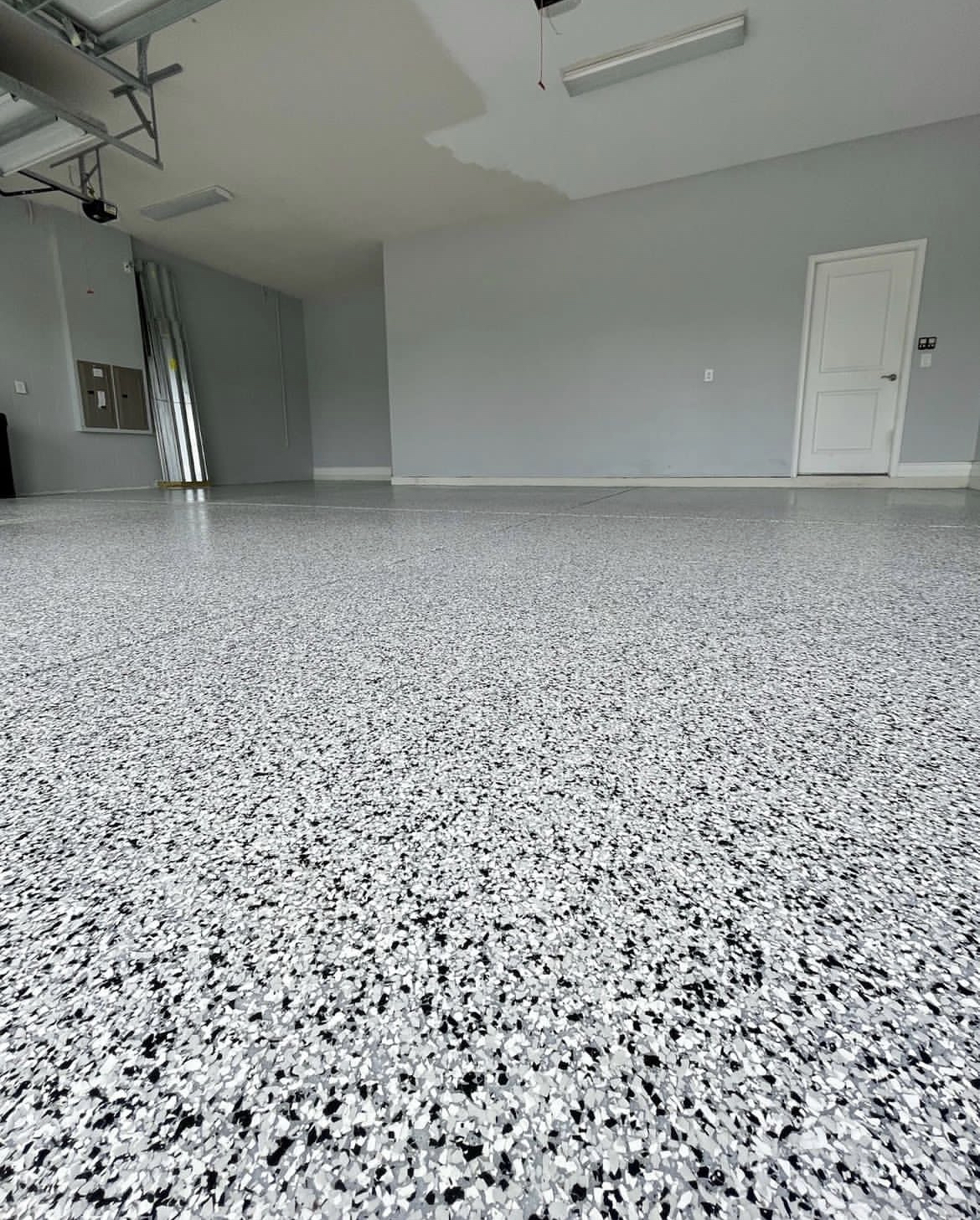Over time, garage floors take a beating from the weather, cars, heavy equipment, and foot traffic, leaving cracks and stains. Our Flake Garage flooring is a reliable and affordable flooring option that will transform, protect, and rejuvenate your garage. Our process is 4 times stronger than traditional epoxy, guaranteeing protection from stains, moisture, and everyday wear and tear.